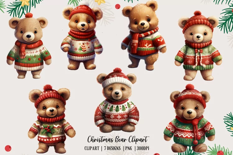 Bear Christmas Clipart | Christmas sublimation PNG example image 1