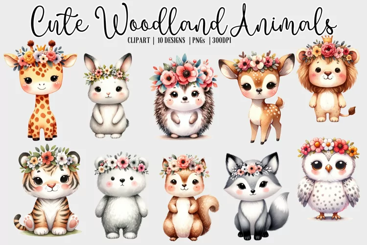 Cute Woodland Animals Clipart|Valentines sublimation Designs