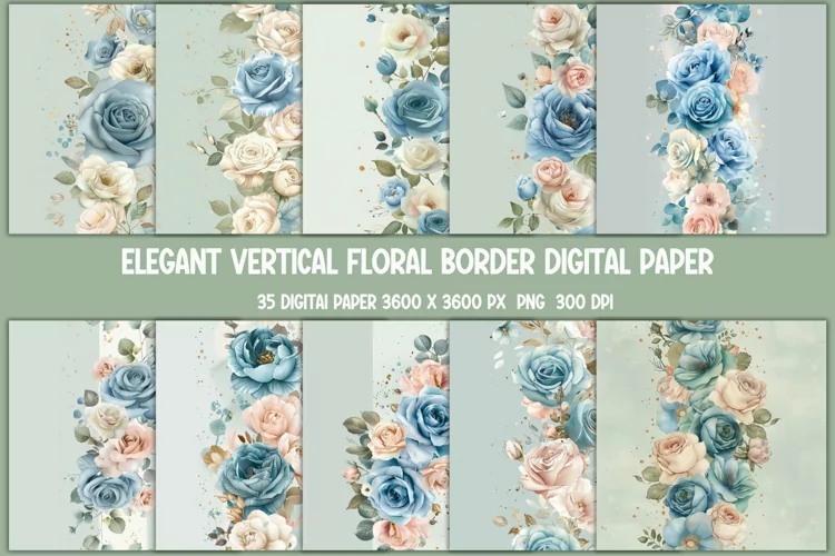 Floral Digital Paper Digital Scrapbooking Digital Download Seamless Floral Design Printable Floral Paper Vertical Border Pattern Crafting Digital Background Diy Stationery Design