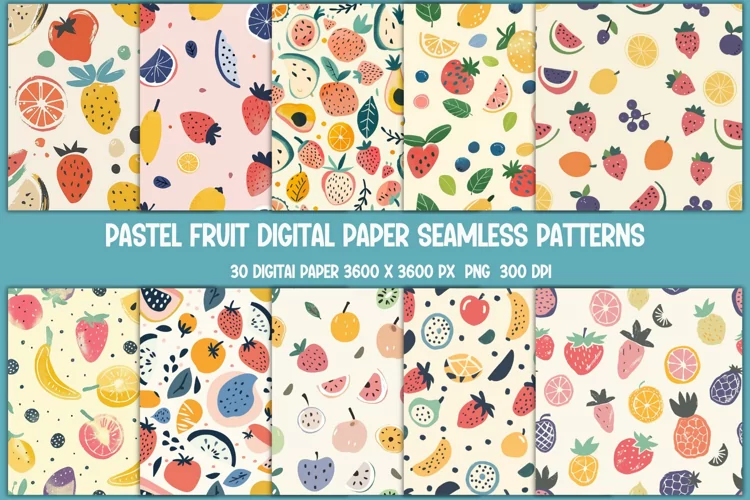 Watercolor Fruits Pastel Digital Paper Scrapbooking Digital Pastel Background Summer Fruit Design Fruit Pattern Paper Seamless Fruit Design Printable Fruit Paper Craft Paper Patterns Digital Download Fruit