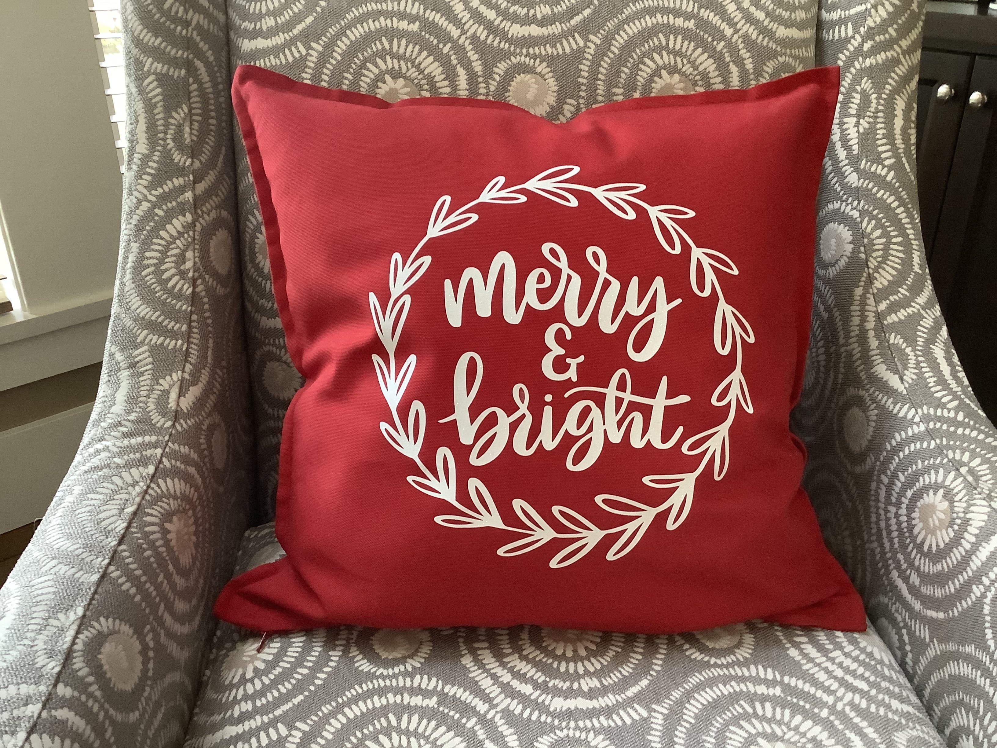 So simple yet elegant. Clean lines and very easy to cut and weed out of vinyl. I used Siser White Glitter on the red pillowcase.