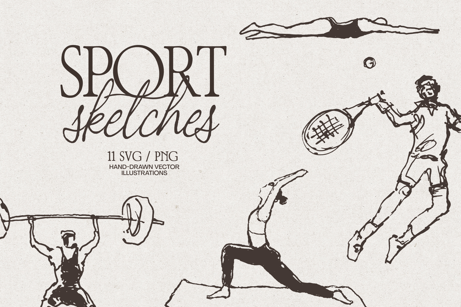 This collection studies the energy of the human form in motion through expressive, hand-drawn linework. From the grounded focus of yoga warrior poses to the explosive power of a tennis serve, heavy weightlifting, and the streamlined grace of swimming, each illustration captures the tension and release of athletic effort. The sketches move beyond static poses, emphasizing fluid anatomy and raw physical momentum.