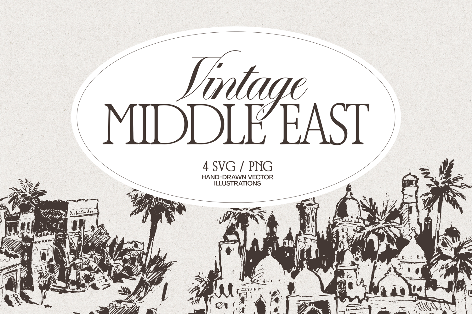 Hand-drawn Middle Eastern architecture vector illustrations created with the sensitivity and precision of true craftsmanship. Each artwork reveals the timeless beauty of ancient desert cities, palm-lined streets, and the quiet journey of a camel caravan crossing the sand.