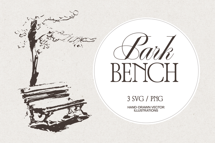 Authentic hand-drawn park bench vector illustrations crafted by artist with traditional sketching techniques, showcasing organic line work and artistic texture.