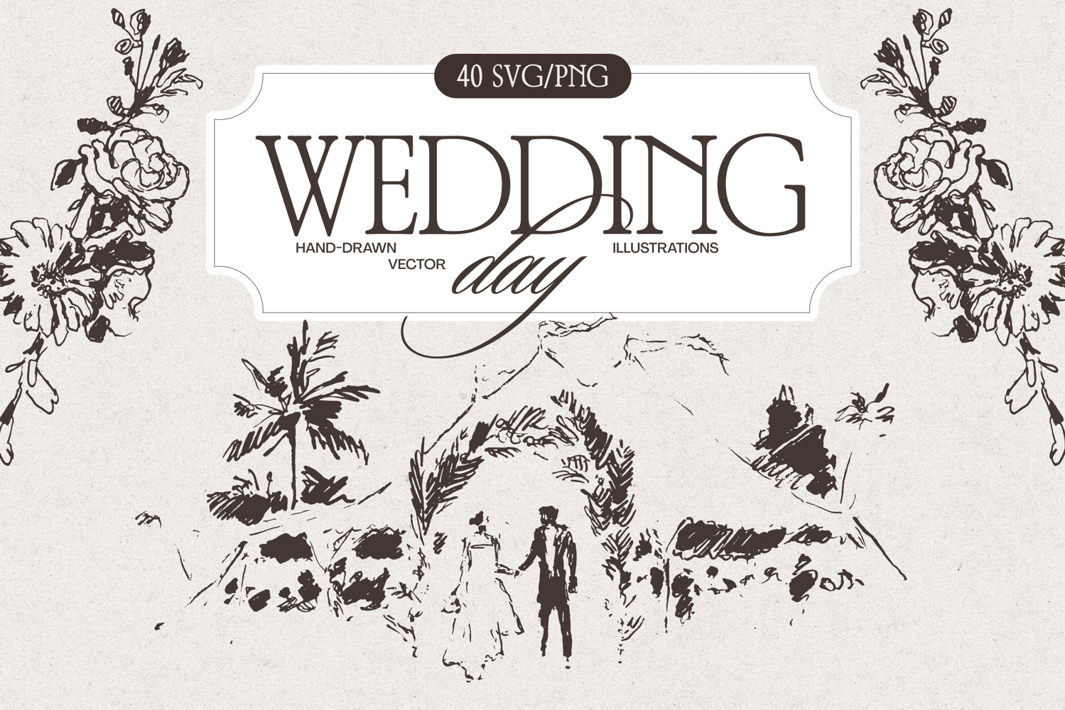This collection features hand-drawn wedding vector illustrations crafted with authentic artistic precision, specifically designed for high-end stationery and branding.