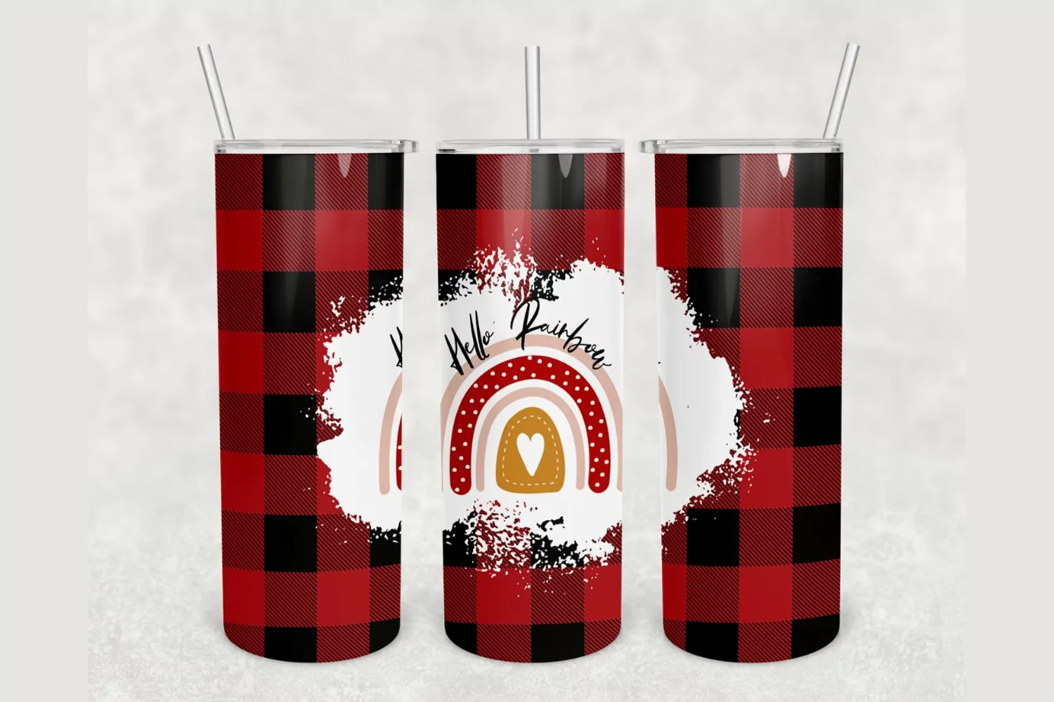 Similar Design Products to Hello Rainbow Red Black Plaid 20oz skinny tumbler