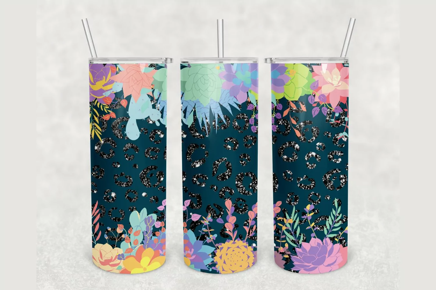 Glitter Leopard Floral Cactus 20 oz skinny tumbler example image 1