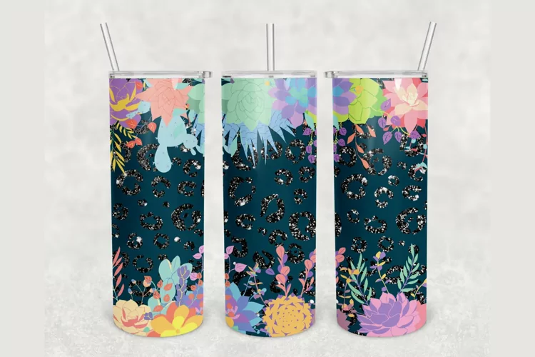 Glitter Leopard Floral Cactus 20 oz skinny tumbler