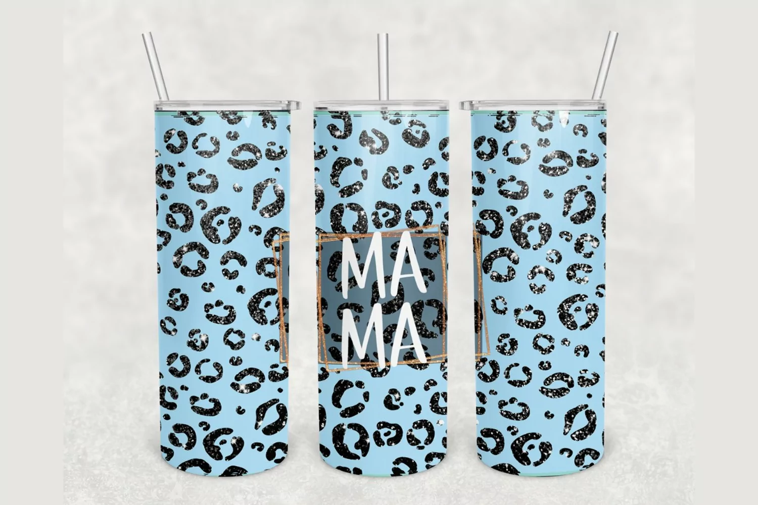 Mama Blue Leopard Glitter 20 oz sublimation design tumbler example image 1