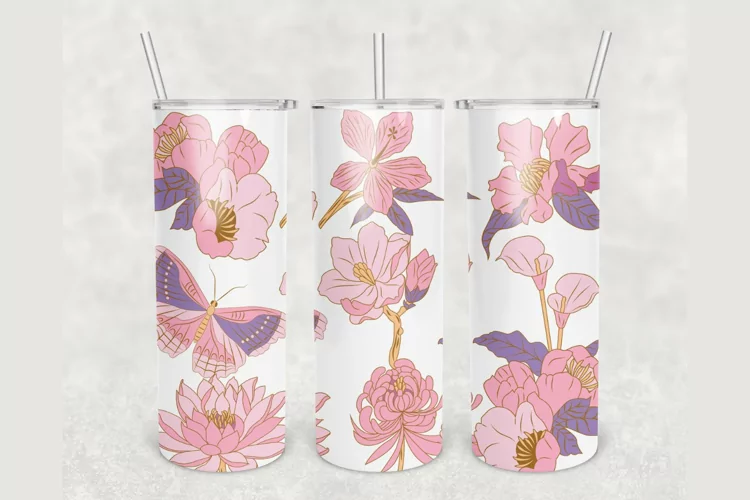 Sublimation Designs Tumbler Design Glitter Tumbler Sublimation Tumbler Skinny Tumbler 20 Oz Skinny Tumbler Tumbler Sublimation Summer Tumbler Floral Tumbler Butterflies Tumbler