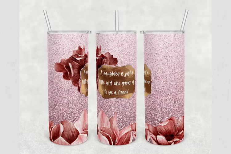 Sublimation Designs Tumbler Design Sublimation Tumbler Skinny Tumbler Tumbler Wrap 20 Oz Skinny Tumbler Tumbler Sublimation Pink Glitter Tumbler Floral Tumbler Daughter Tumbler