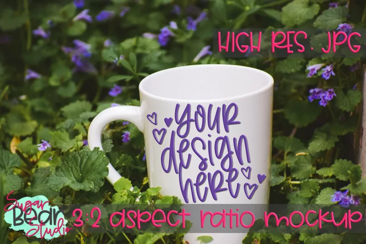 This white mug in wild blue flowers mockup is great for showing your designs in a life like way!