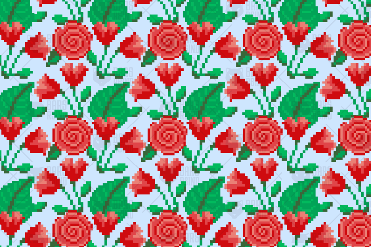 Retro Art Flowers Pattern Seamless Roses Red Pixel Flora 8bit