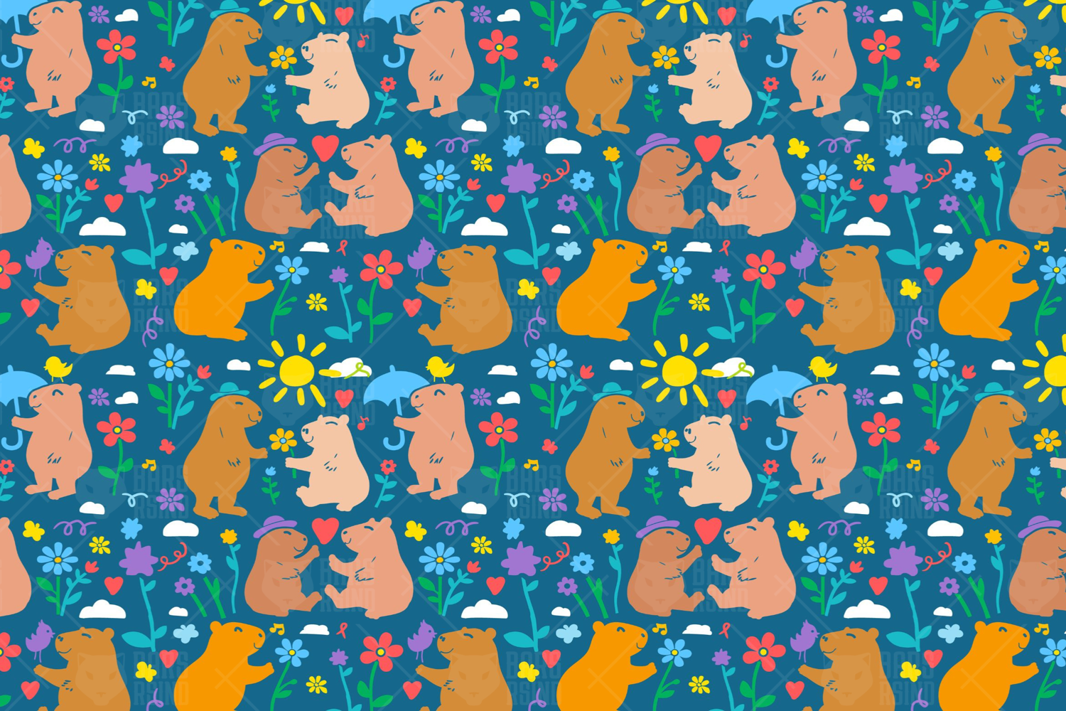 Handdrawn Animal Cute Nature Floral Flower Pattern Seamless Pet Capybara