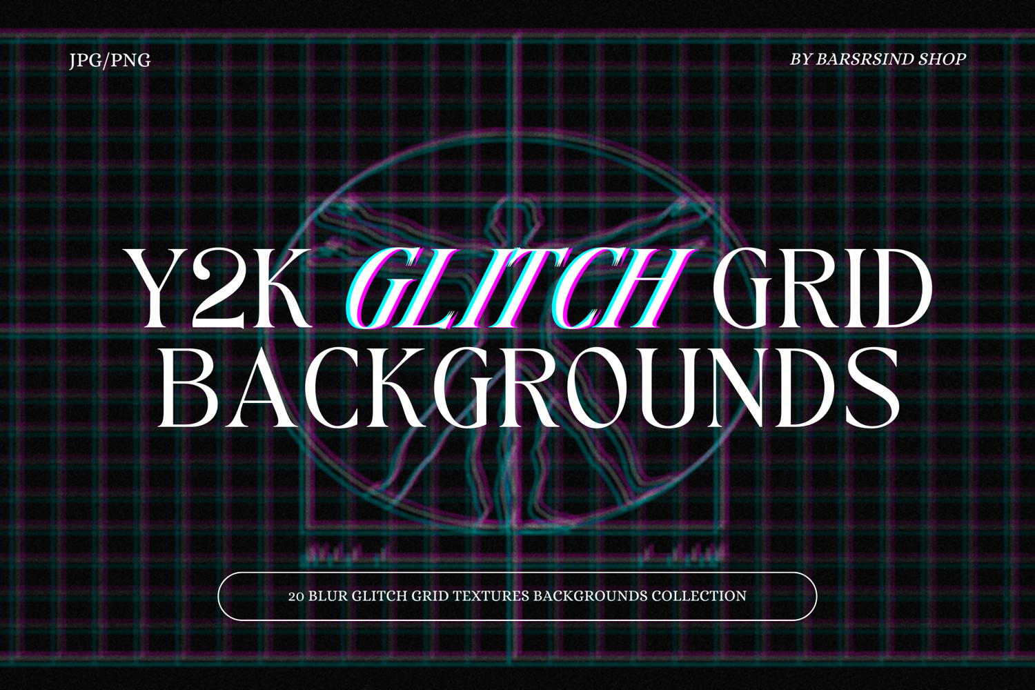 ✔️ 20 unique Y2K Glitch Backgrounds with grid and glitch effects