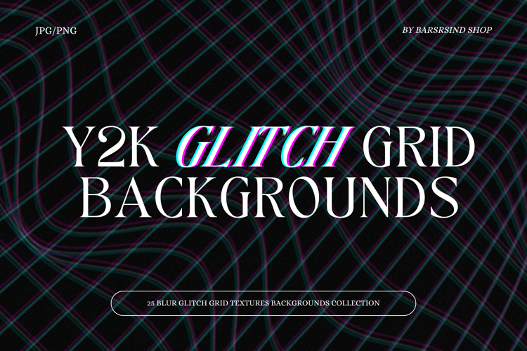 ✔️ 25 unique Y2K Glitch Backgrounds with grid and glitch effects