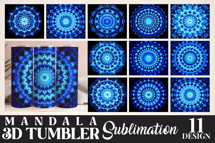 Blue Mandala 3D Tumbler Sublimation Bunlde