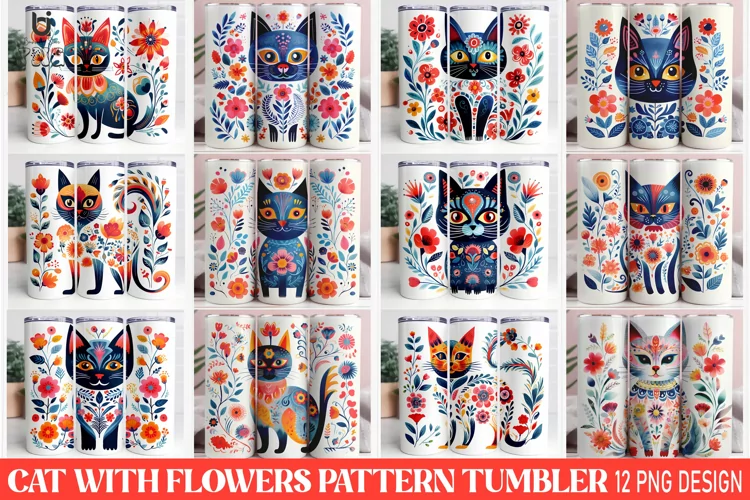 Similar Design Products to Cat with Flowers Pattern Sublimation Tumbler Design