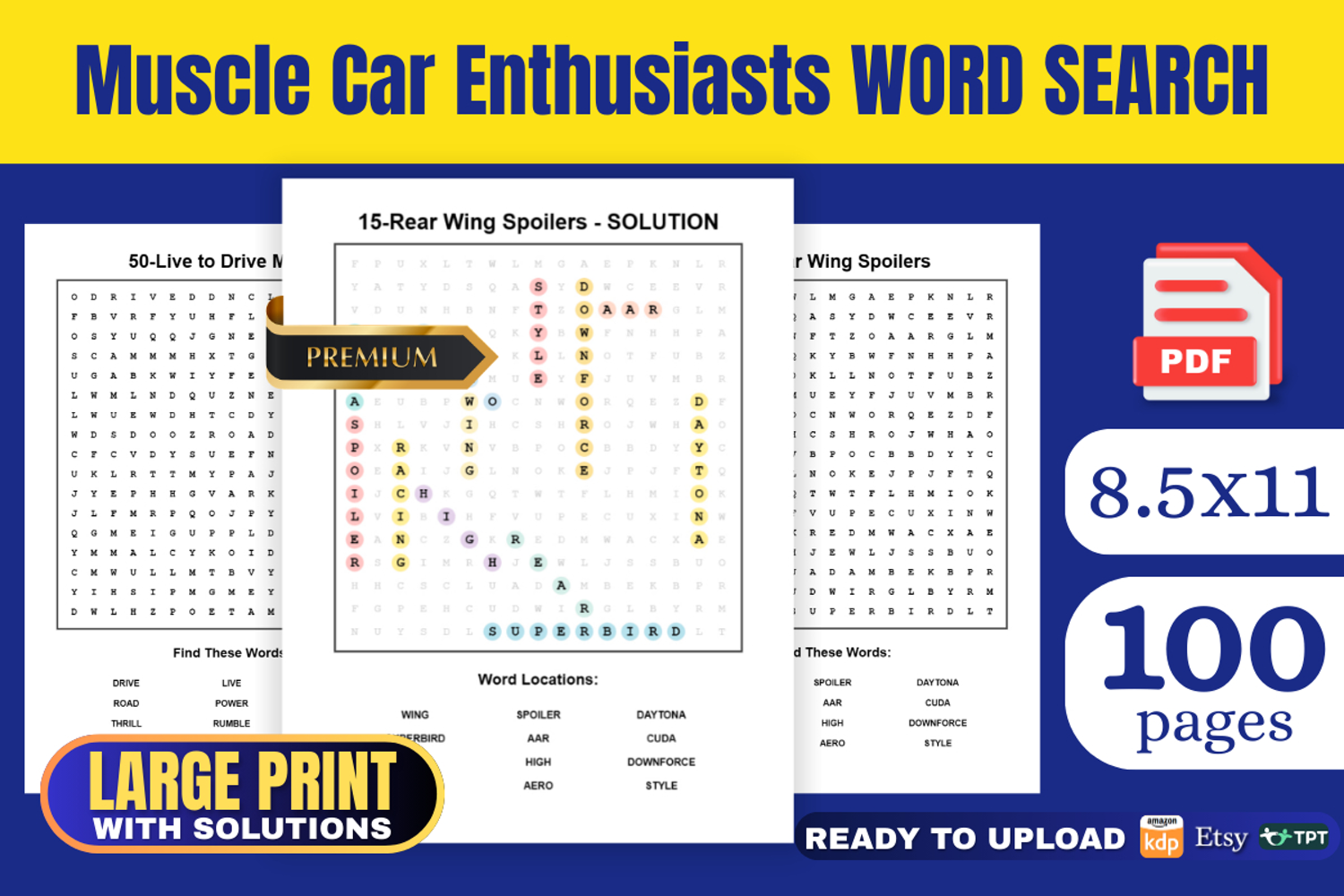 Perfect for Muscle Car Enthusiasts who love relaxing, fun, and engaging word search challenges.