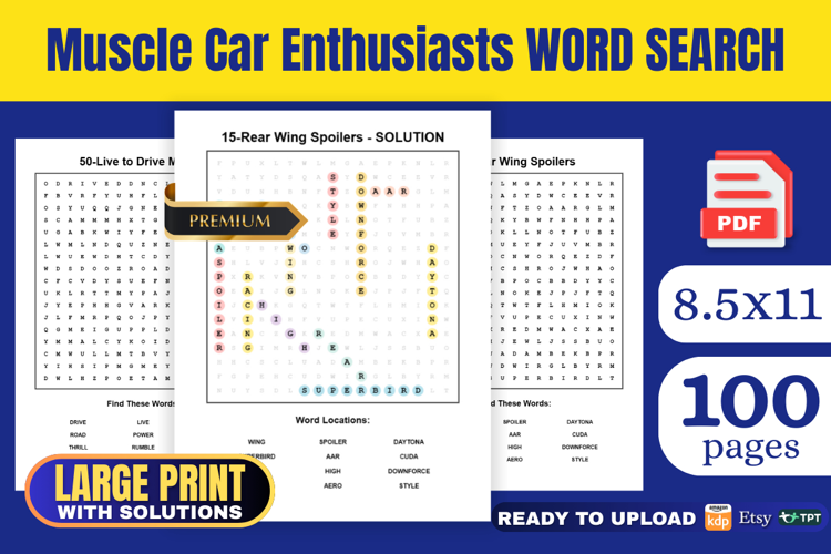 Muscle Car Enthusiasts Word Search KDP example image 1