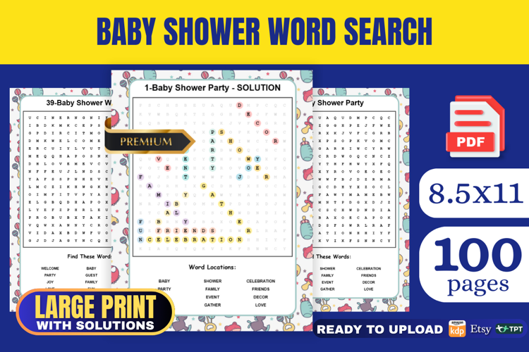 Perfect for Baby Shower, relaxing, fun, and engaging word search challenges.