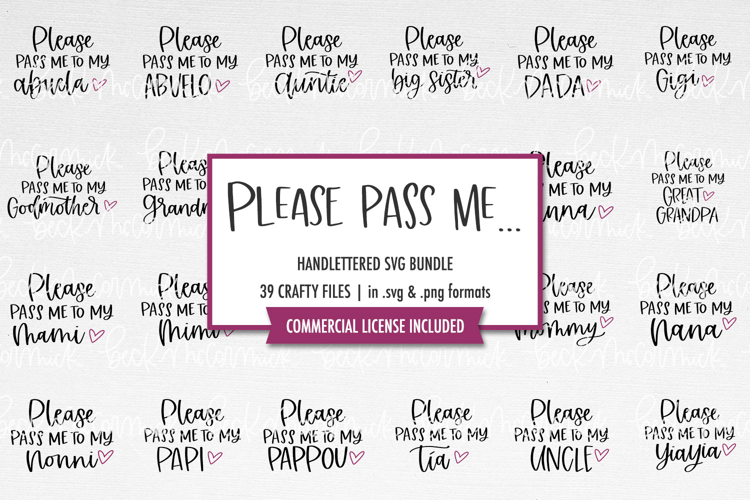 The Please Pass Me SVG Bundle features a variety of family members and a sweet little heart. This bundle is great for making cute onesies and shirts for toddlers and young children, so everyone know exactly who the favorite family member is!