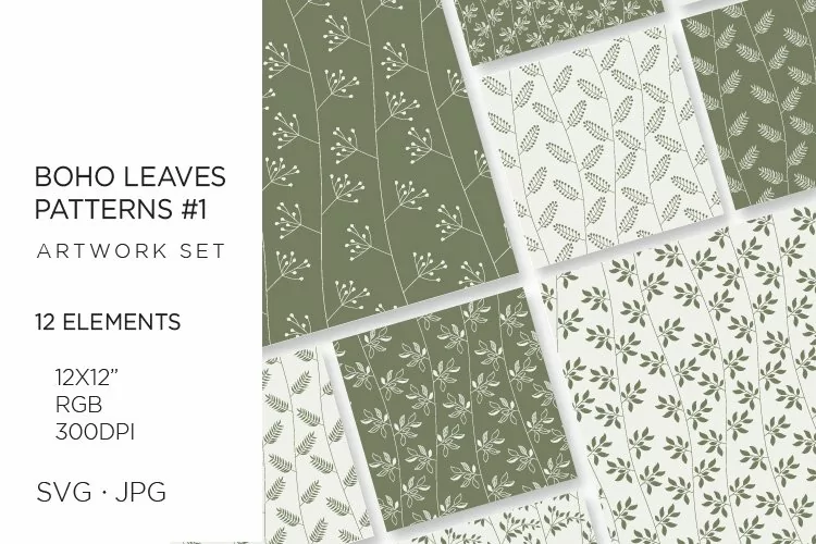 BOHO LEAVES PATTERNS #1- SVG ARTWORK SET