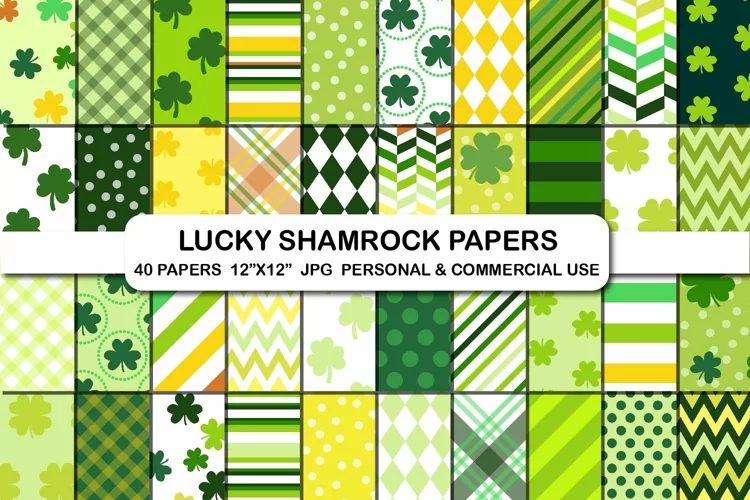 St Patricks Shamrock Pattern Digital Papers Set