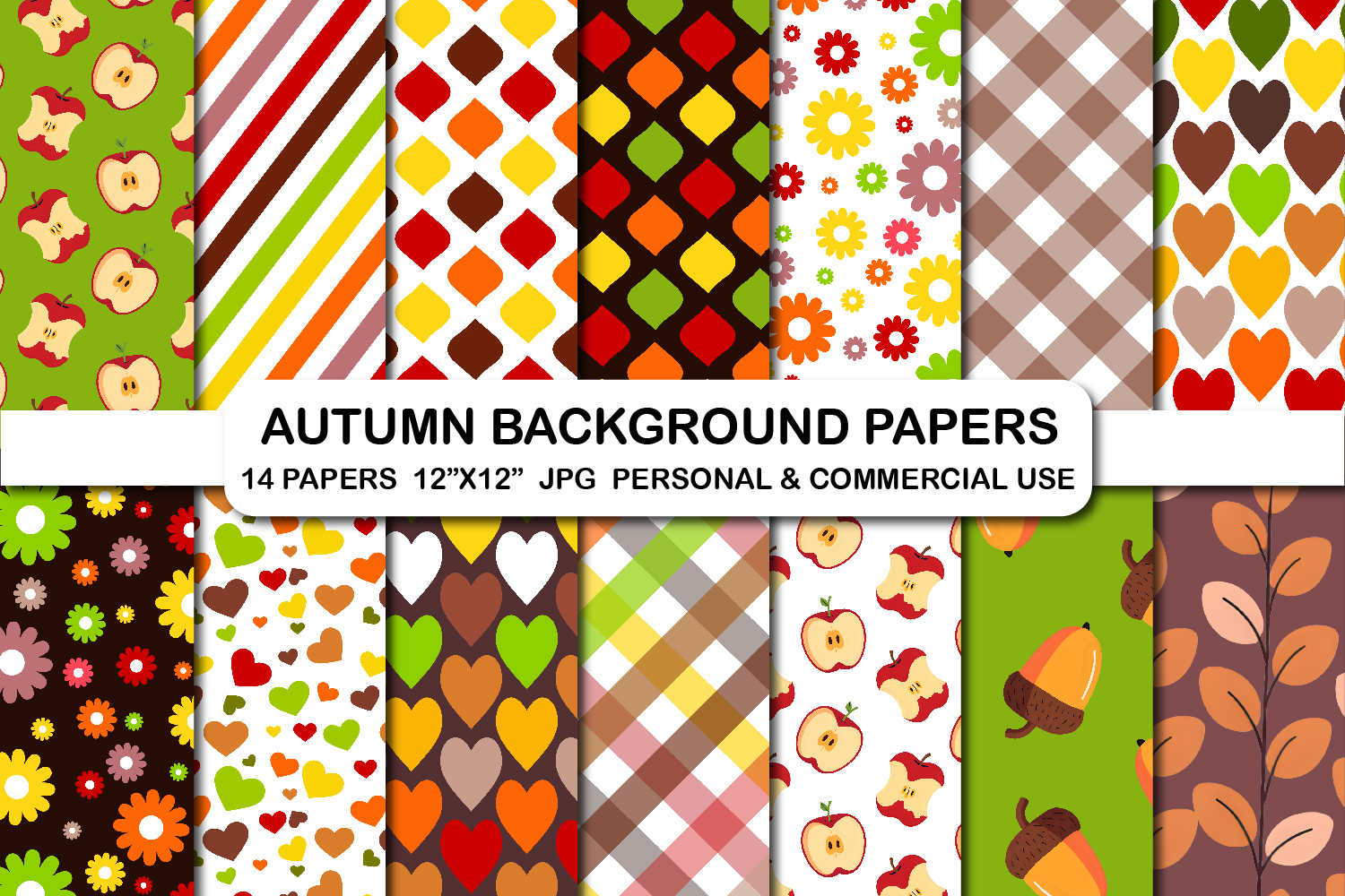 Fall digital paper pack Autumn pattern paper kit Background example image 1