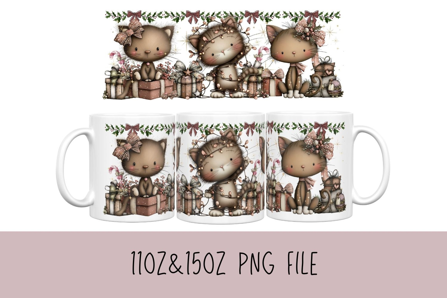 11oz, 15oz Christmas Mug Coffee PNG Sublimation, Cute Cat example image 1