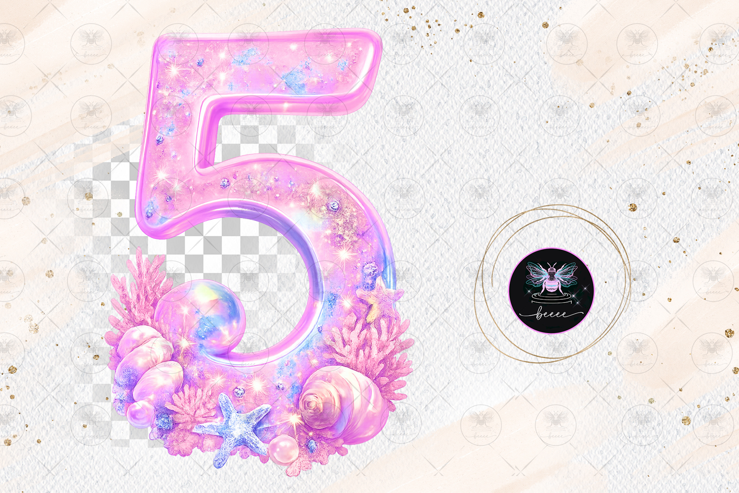 Mermaid clipart number — a whimsical sea-themed numeral illustration featuring a cute mermaid design, perfect for birthday decorations, nursery prints, party invitations, classroom materials, scrapbooking, and creative digital projects. PNG file transparent background