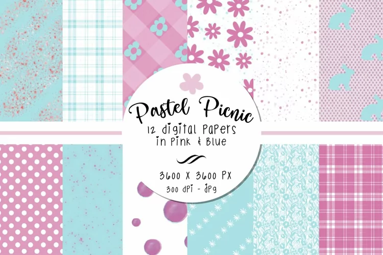 Pink and Blue Pastel Digital Papers Bundle - Set of 12