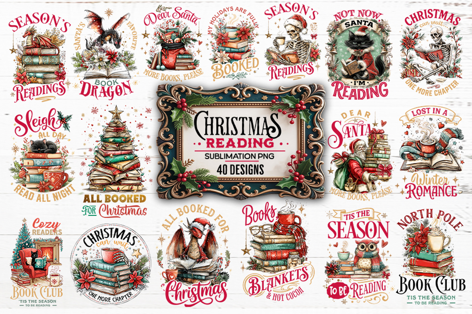 Celebrate the magic of books and the holiday season with this Christmas Reading Sublimation Bundle! Featuring 40 beautifully detailed festive designs, this collection blends cozy reading themes with Christmas charm — perfect for bookworms, libraries, and holiday crafting.