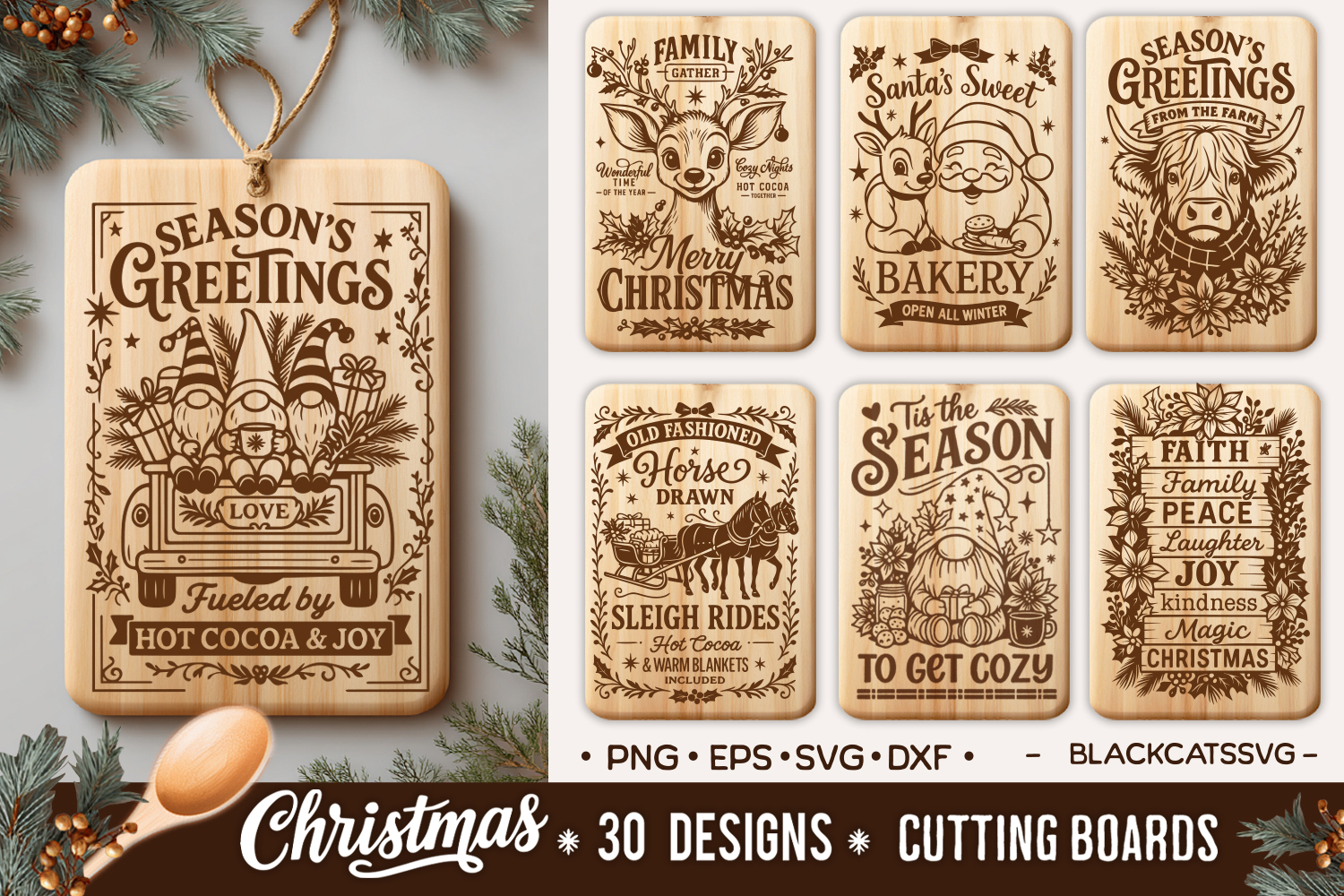 Christmas Cutting Board SVG Bundle – Rustic Farmhouse Holiday Quotes & Engraving Designs