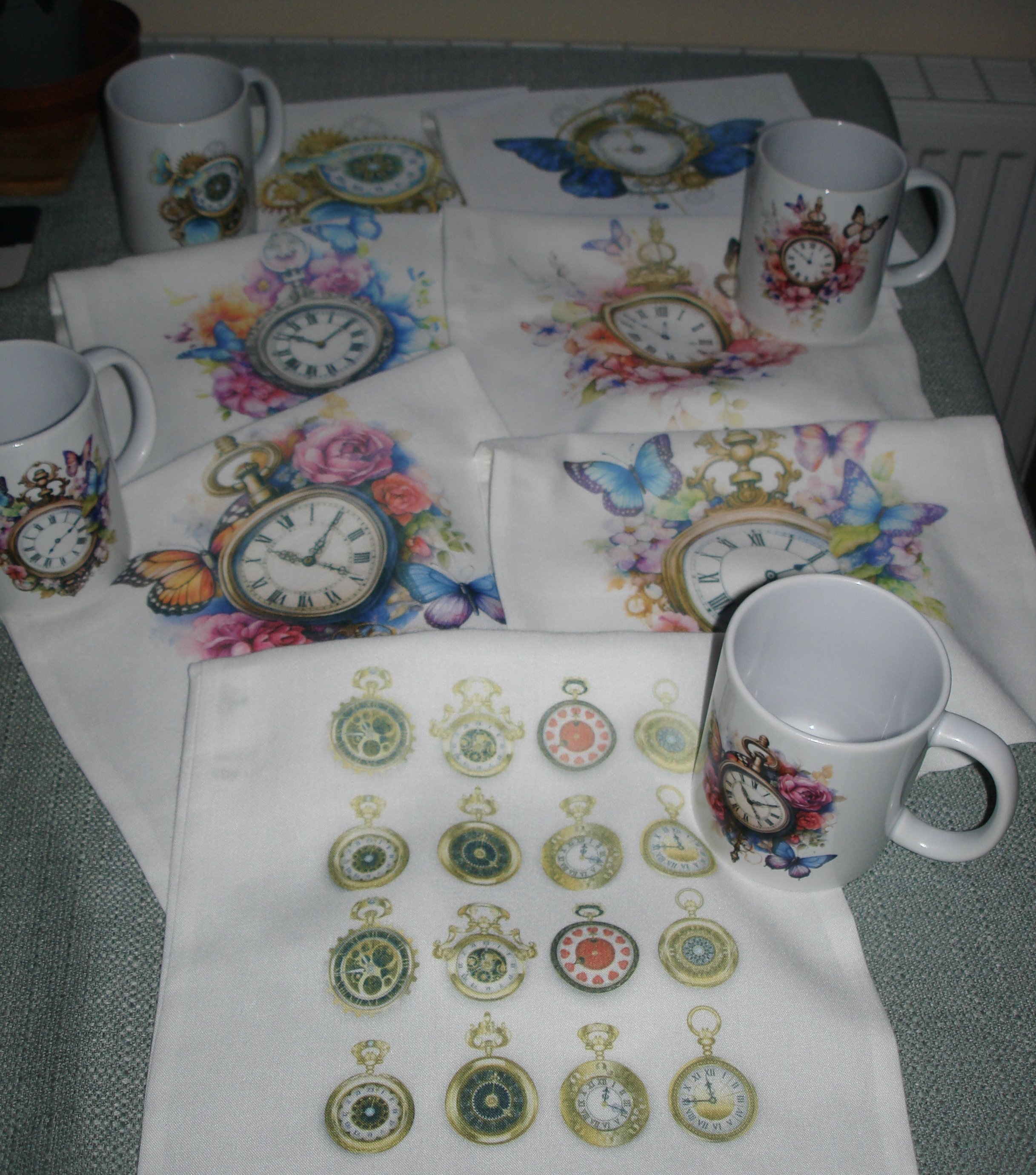 The colours and time piece are gorgeous . Used on bags and mugs. Have shown all of these images in the one photograph.