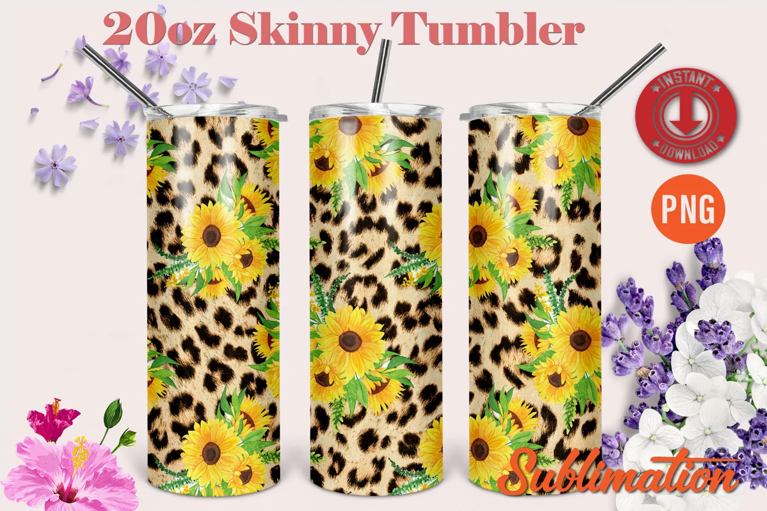 Similar Design Products to Leopard Print Sunflower 20oz Skinny Tumbler sublimation PNG