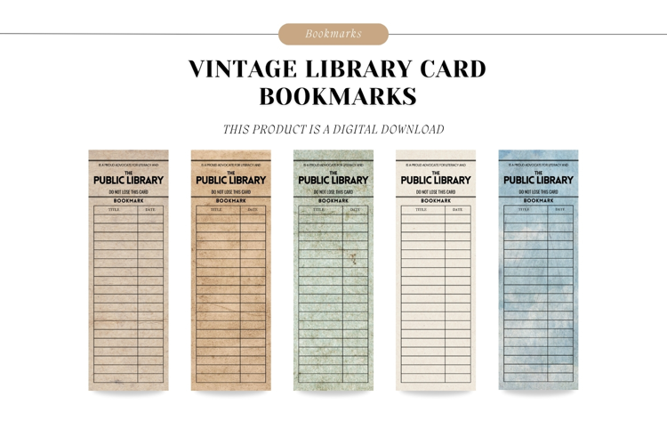 Keep track of your reading adventures with these vintage library card bookmarks a cute and practical way to mark your page and record your books. Each printable card features vintage tones and a classic library design for cozy bookish vibes. Perfect for book lovers, reading journals, and TBR tracking!