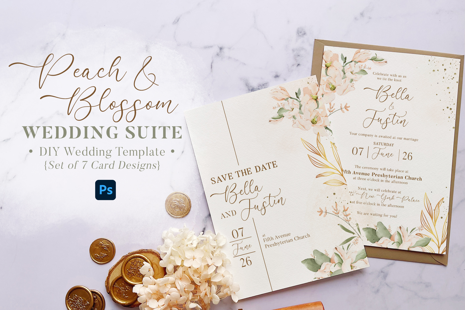 Peach Floral Wedding Spring Wedding Design Romantic Wedding Invitation Watercolor Greenery Invitation Watercolor Peach Wedding Invitation Elegant Floral Stationery Watercolor Floral Template Garden Wedding Suite Pastel Floral Wedding Watercolor Elegant Wedding