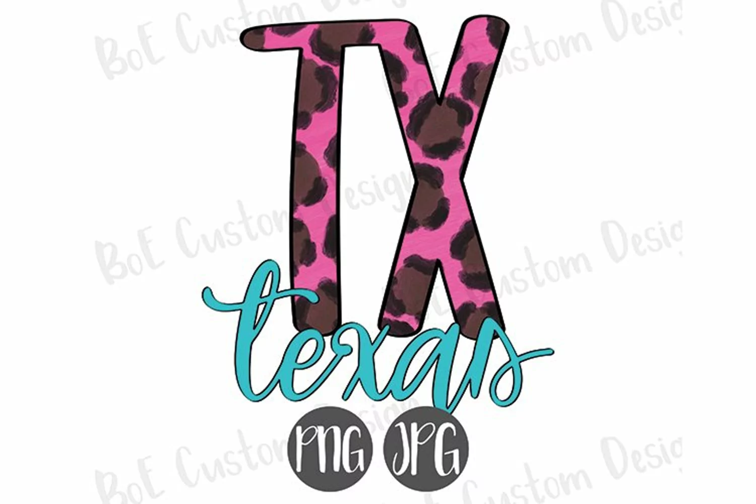 Painted Pink Texas Clipart Blue Leopard Polka Dots Sublimation Preppy Tx