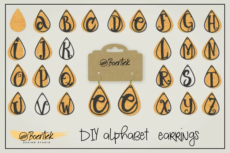 Alphabet earring templates. Earrings of two layers, which you can make from faux leather, canvas, paper, wood, etc.