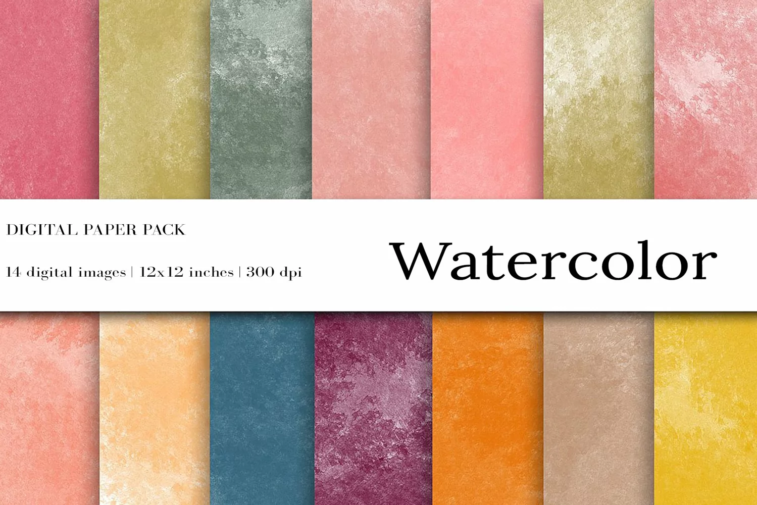 Watercolor background. Watercolor textures. This set of 14 high resolution colorful watercolor digital paper.