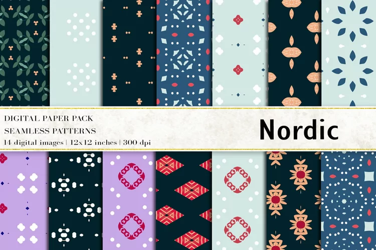 Nordic Digital Papers. This set of 14 Nordic seamless pattern, Scandinavian pattern.