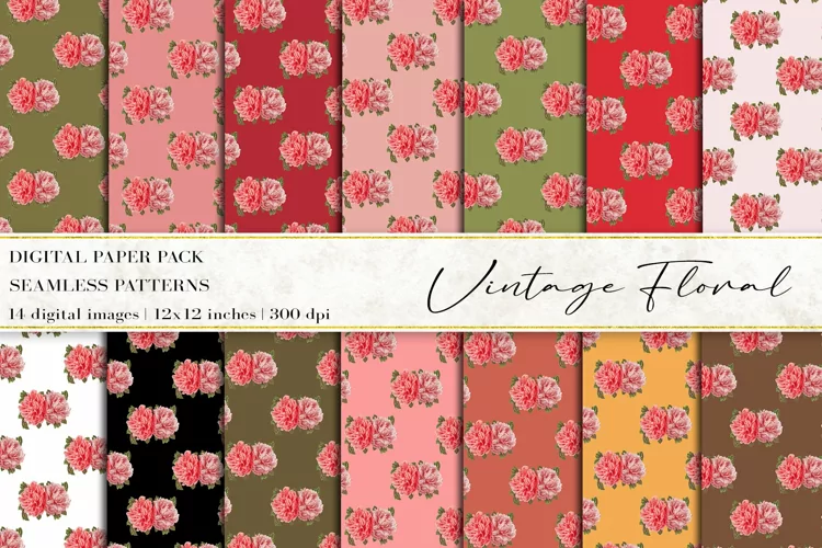 This set of 14 Vintage Floral digital paper set. Vintage Flowers Seamless Patterns.