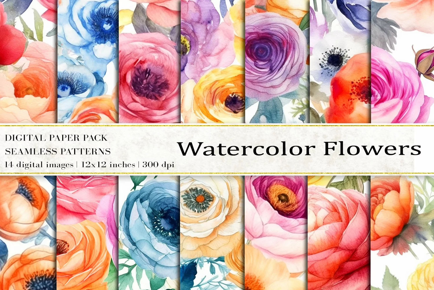 Watercolor Flowers Digital Papers, Vintage Watercolor Backgrounds, Vintage Watercolor Flowers Pattern, Vintage Patterns