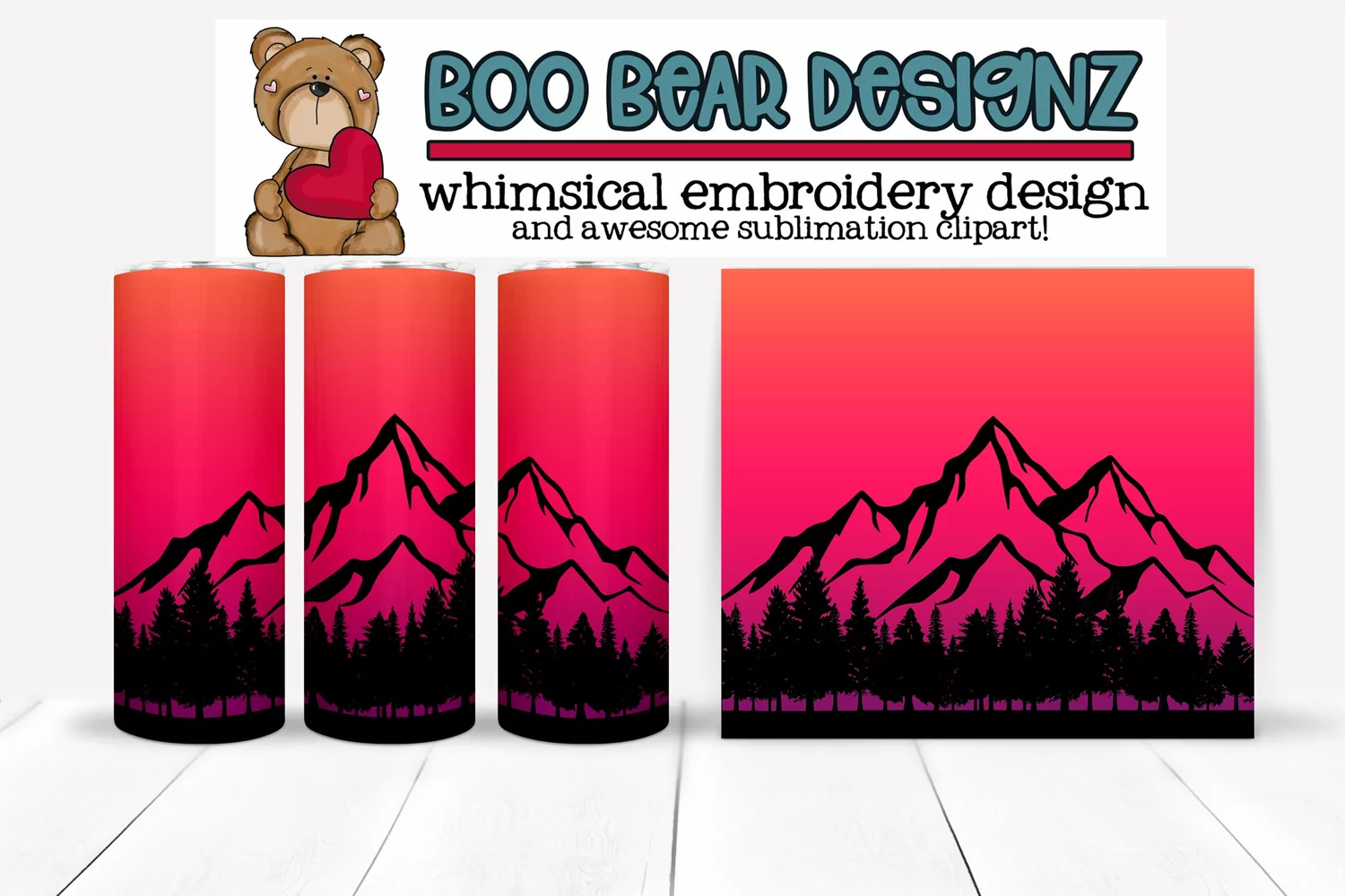 Similar Design Products to Hot pink Ombre Mountains Sublimation tumbler design