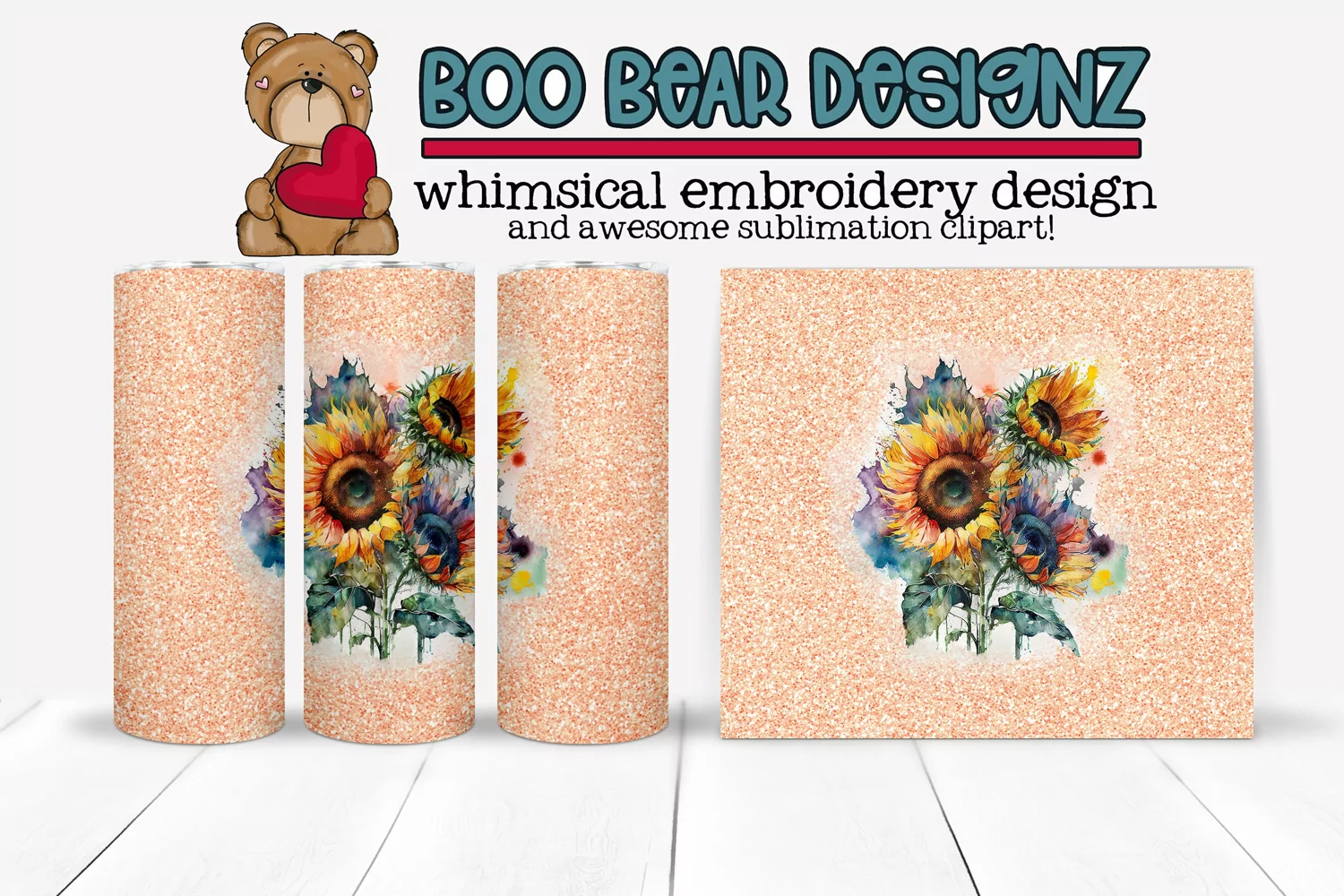 Watercolor Sunflower glitter Sublimation tumbler design example image 1