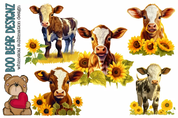 Similar Design Products to Baby Cows with Sunflowers Sublimation design