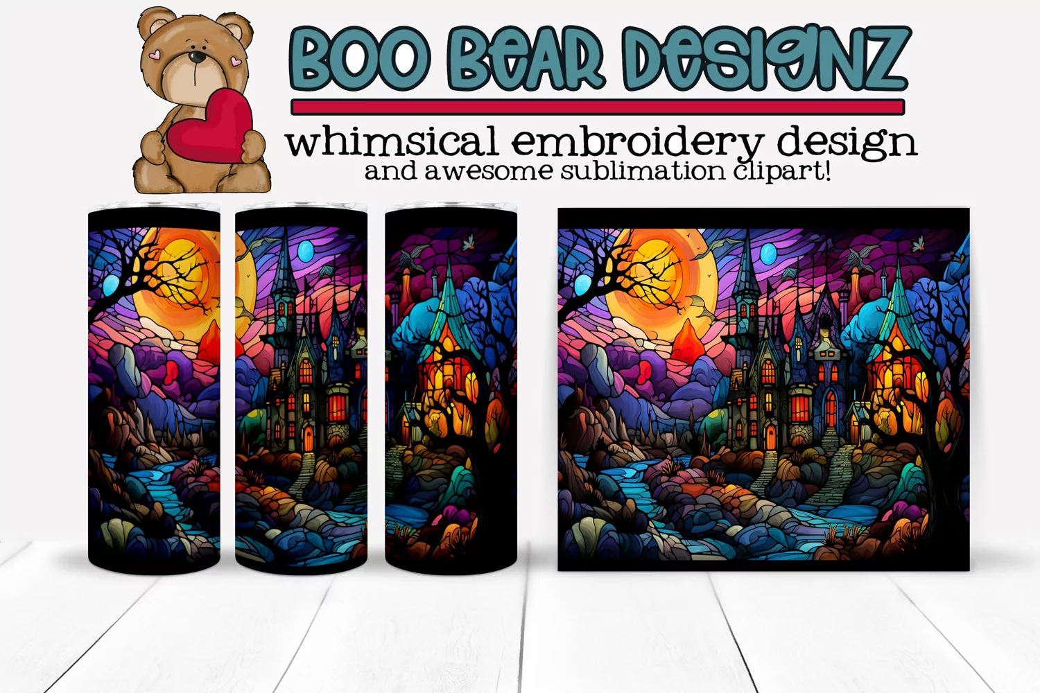 Stain Glass Halloween Sublimation tumbler design example image 1