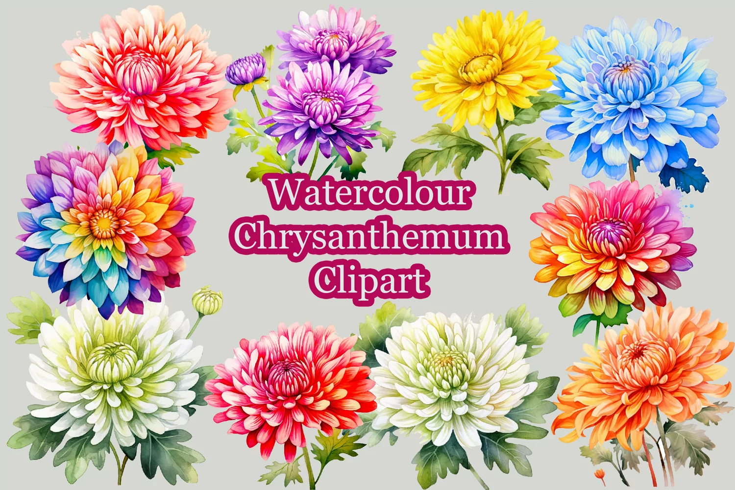 Watercolor Chrysanthemum Clipart Sublimation