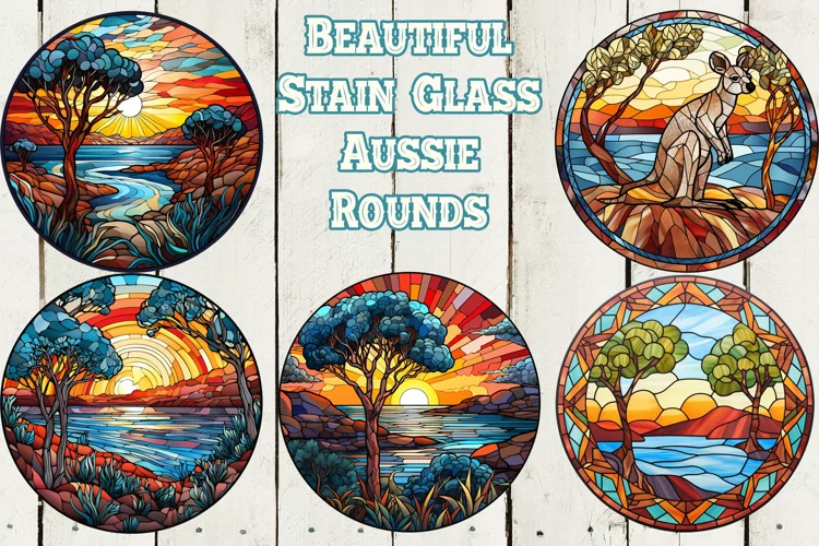 Sublimation Png File Aussie Sublimation Design Kangroo Stain Glass Rounds